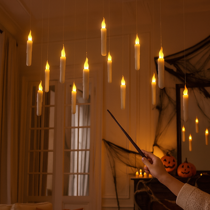 🎇 Découvrez la magie des bougies flottantes sans flamme !Avec un simple coup de baguette, elles s’illuminent instantanément ✨Apportez une ambiance féerique à vos soirées, sans fumée ni danger 🔥